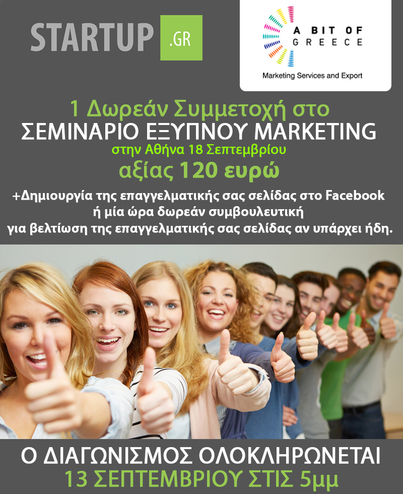 Η συμμετοχή είναι μια προσφορά της εταιρείας Α bit of greece για τους αναγνώστες του Startup.gr. ΓΙΑ ΠΕΡΙΣΣΟΤΕΡΕΣ ΠΛΗΡΟΦΟΡΙΕΣ ΜΕ ΤΟ ΣΕΜΙΝΑΡΙΟ ΕΞΥΠΝΟΥ MARKETING ΠΑΤΗΣΤΕ ΕΔΩ