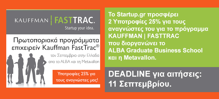 ALBA Graduate Business School is proud to co-operate with Metavallon in offering the Kauffman FastTrac courses in Greece! Metavallon is the exclusive Certified Affiliate organization in Greece for Kauffman FastTrac, this leading international provider of entrepreneurship programs.