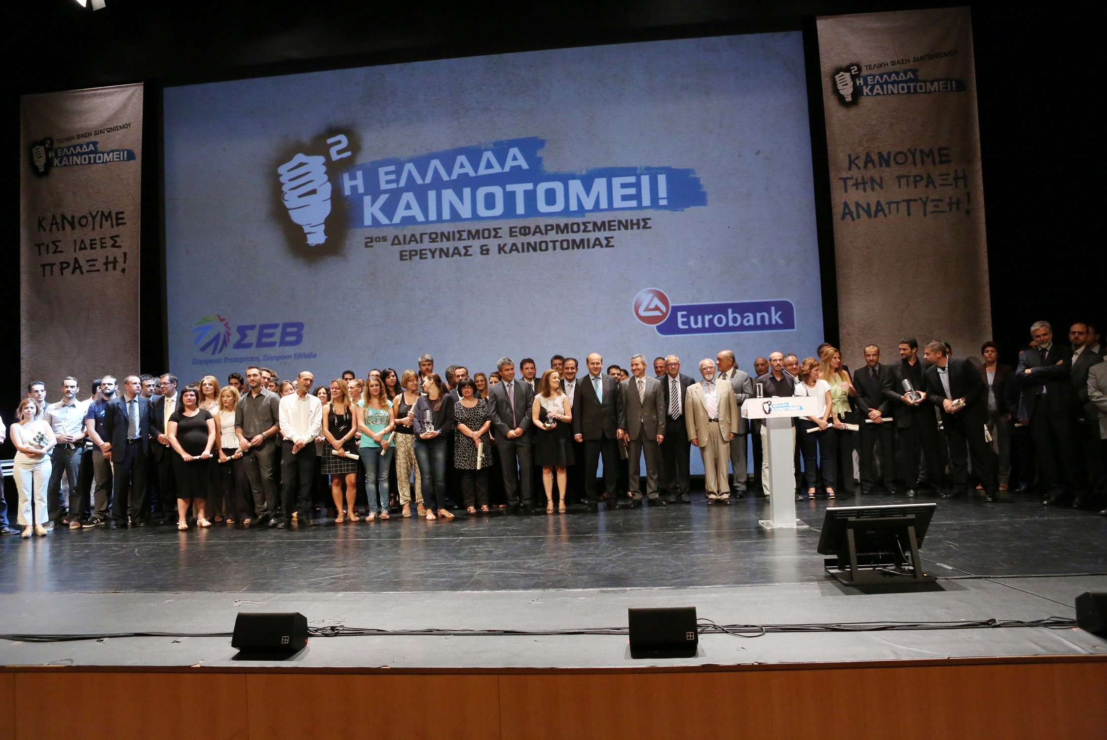 Η δημιουργική Ελλάδα που πρωτοπορεί σε παγκόσμιο επίπεδο αναπτύσσοντας πρότυπες τεχνολογίες και υπηρεσίες αναδείχθηκε στην τελετή της απονομής των βραβείων του 2ου διαγωνισμού «Η Ελλάδα Καινοτομεί!», που διοργάνωσαν από κοινού η Eurobank και ο ΣΕΒ σύνδεσμος επιχειρήσεων και βιομηχανιών.