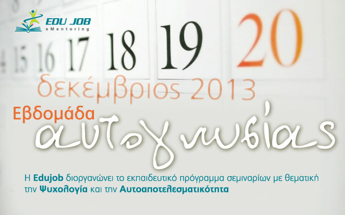 Edujob διοργανώνει το εκπαιδευτικό πρόγραμμα σεμιναρίων με θεματική την Ψυχολογία και την Αυτοαποτελεσματικότητα.