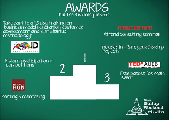Οι τρεις πρώτες ιδέες που θα αναδειχτούν στο Athens Startup Weekend Education θα έχουν μια ενδιαφέρουσα συνέχεια στην επιχειρηματική τους πορεία, χάρη στα προϊόντα και τις υπηρεσίες που προσφέρουν οι local και global sponsors του Startup Weekend.