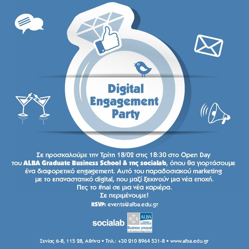 We invite you to join us on Tuesday , February 18th @18:30 for an Open Day organized by ALBA Graduate Business School & socialab, during which we will celebrate a different type of engagement. This of the traditional marketing with the revolutionary digital !! say #nai to a new career!