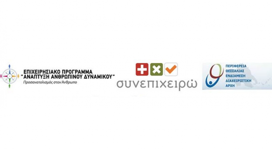 Η πράξη «ΣΥΝΕΠΙΧΕΙΡΩ: Πρωτοβουλία για την υποστήριξη της Τοπικής Ανάπτυξης & Επιχειρηματικότητας – Θυρίδες Επιχειρηματικότητας», υλοποιείται στο πλαίσιο της Δράσης 7: «Τοπικά Σχέδια για την απασχόληση, προσαρμοσμένα στις ανάγκες των τοπικών αγορών εργασίας» της Κατηγορίας Παρέμβασης 1: «Ενεργητικές Πολιτικές Απασχόλησης» του Θεματικού Άξονα Προτεραιότητας 7: «Διευκόλυνση της πρόσβασης στην Απασχόληση στις 8 περιφέρειες σύγκλισης», του Επιχειρησιακού Προγράμματος «Ανάπτυξη Ανθρώπινου Δυναμικού 2007-2013» που συγχρηματοδοτείται από το Ευρωπαϊκό Κοινωνικό Ταμείο (ΕΚΤ).