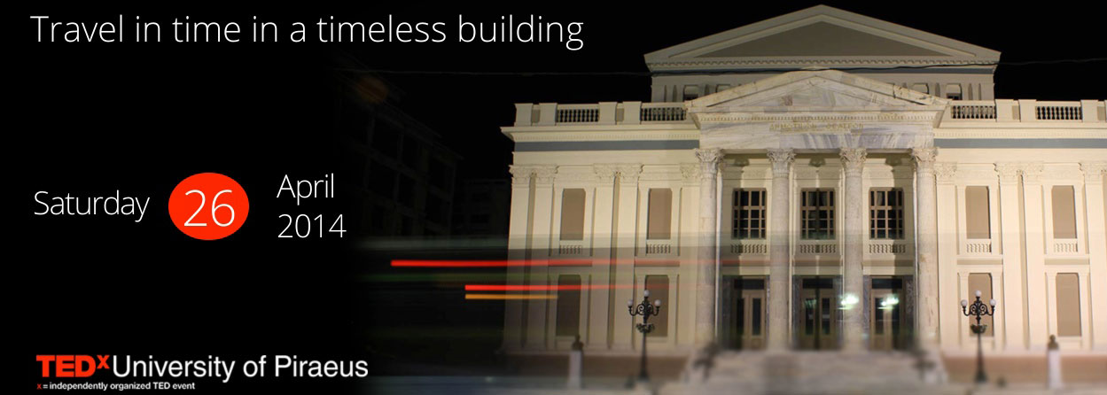 Στις 26 Απριλίου πραγματοποιείται το δεύτερο TEDx University of Piraeus με θέμα “Time Voyagers” στο Δημοτικό Θέατρο Πειραιά. Ένα συνέδριο αφιερωμένο στην εξέλιξη των ιδεών στον χρόνο. Στις πράξεις του παρελθόντος που μας κάνουν τους ανθρώπους που είμαστε σήμερα. Στις ιδέες του σήμερα που θα αποτελούν μεγάλα επιτεύγματα στο μέλλον. Στις αποφάσεις, στα όνειρα, και στις πράξεις που κάνουμε σήμερα για να φτιάξουμε το δικό μας αύριο.