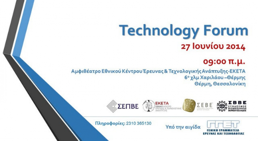 Κάτω από το παραπάνω πρίσμα, οι ΣΕΠΒΕ, ΕΚΕΤΑ, ΣΕΒΕ, ΣΒΒΕ οργανώνουν το Technology Forum υπό την αιγίδα της ΓΓΕΤ στην χώρο του ΕΚΕΤΑ στις 27/06/2014, 9:30-17:30.