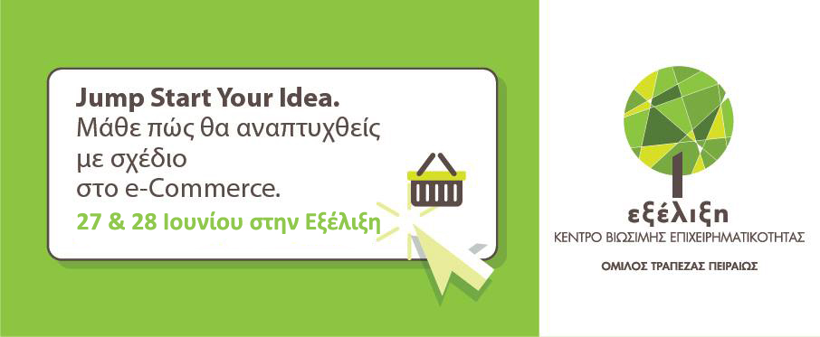 Το Κέντρο Βιώσιμης Επιχειρηματικότητας Εξέλιξη, μέλος του Ομίλου Πειραιώς, σε συνεργασία με το Educational Thinktank StudySmart, μετά την πρόσφατη επιτυχημένη διεξαγωγή του εκπαιδευτικού προγράμματος Jump Start your idea in e-Commerce, υλοποιούν και πάλι το πρόγραμμα στις 27 & 28 Ιουνίου 2014 στις εγκαταστάσεις της Εξέλιξης. Πρόκειται για ένα εξειδικευμένο διήμερο workshop, το οποίο εστιάζει στα θέματα στρατηγικής και σχεδιασμού για την ανάπτυξη μιας επιτυχημένης και βιώσιμης επιχείρησης. Απευθύνεται σε όσους σκοπεύουν να δημιουργήσουν τη δική τους επιχείρηση ή επιθυμούν να αναπτύξουν την υπάρχουσα.
