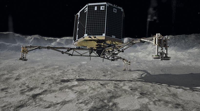 “Το Philae βρίσκεται στη βάση ενός απόκρημνου βράχου”, δήλωσε ο Φιλίπ Γκοντόν, ο επικεφαλής του σχεδίου Ροζέτα στη CNES, τη γαλλική διαστημική υπηρεσία