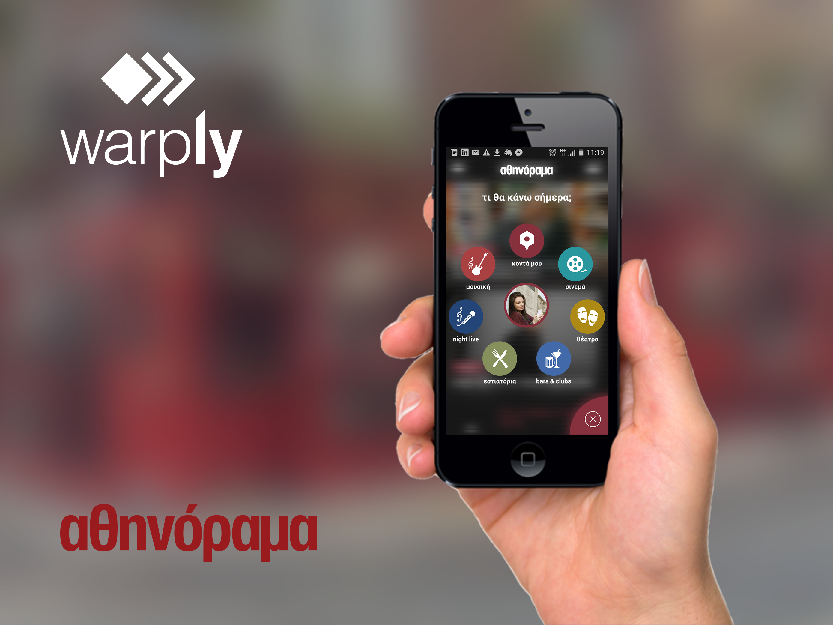 Η Warply σχεδίασε και υλοποίησε τη νέα εφαρμογή για κινητά τηλέφωνα “Athinorama” που μόλις κυκλοφόρησε σε Android ενώ σύντομα θα είναι διαθέσιμη και σε iOS. Πρόκειται για την πρώτη εφαρμογή στην Ελλάδα, που αξιοποιεί την τεχνολογία iBeacons – συνδέοντας το mobile app με φυσικά, συνεργαζόμενα με το Αθηνόραμα, καταστήματα. Παράλληλα, η εφαρμογή παρέχει τη δυνατότητα για native advertising και έχει ήδη ενταχθεί στο Warply Ad Network για την εμπορική αξιοποίηση.