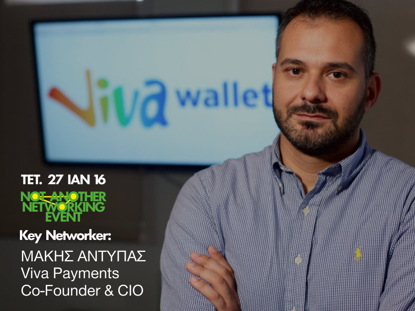 Το τρίτο Not Another Networking Event εγκαινιάζει την πρωτοβουλία των key networkers, επιφανείς ανθρώπους του χώρου των επιχειρήσεων και του ευρύτερου δημιουργικού κλάδου, οι οποίοι θα προσκαλούνται στο χώρο του Ρομάντσο ως επίτιμοι networkers, για να μοιραστούν μαζί μας την εμπειρία τους. Ο πρώτος καλεσμένος, για το event της Τετάρτης 27 Ιανουαρίου 2016, είναι ο Μάκης Αντύπας, co-founder και CIO της Viva Payments και μέλος της συμβουλευτικής επιτροπής του TEDxAcademy.