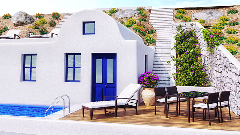 Αναπαλαιώνουν μια ερειπωμένη υπόσκαφη κατοικία στο Ακρωτήρι της Σαντορίνης και την μεταμορφώνουν σε μια μοντέρνα βιοκλιματική ενοικιαζόμενη κατοικία με θέα στην Kαλντέρα και το μαγευτικό ηλιοβασίλεμα.