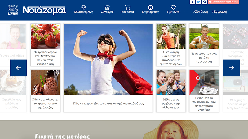 H Nestlé Ελλάς, η κορυφαία εταιρεία διατροφής, υγείας και ευεξίας, προσπαθεί καθημερινά να κάνει πράξη την υπόσχεσή της για καλή διατροφή και καλύτερη ζωή. Στο πλαίσιο αυτό δημιουργήθηκε το www.NestleNoiazomai.gr, η διαδικτυακή πλατφόρμα που στόχο έχει να συμβάλλει σε μια καλύτερη ζωή, βασισμένη πάντα στην καλή διατροφή. Στο NestleNoiazomai.gr μπορεί να βρει κανείς μια ποικιλία θεμάτων αποκλειστικα γραμμένα από ειδικούς, που αφορούν στην ισορροπημένη διατροφή, στην υγεία, στην πρόληψη και στην ευεξία, αλλά και συνταγές από αγαπημένους σεφ καθώς και πολλούς διαγωνισμούς για τα μέλη.