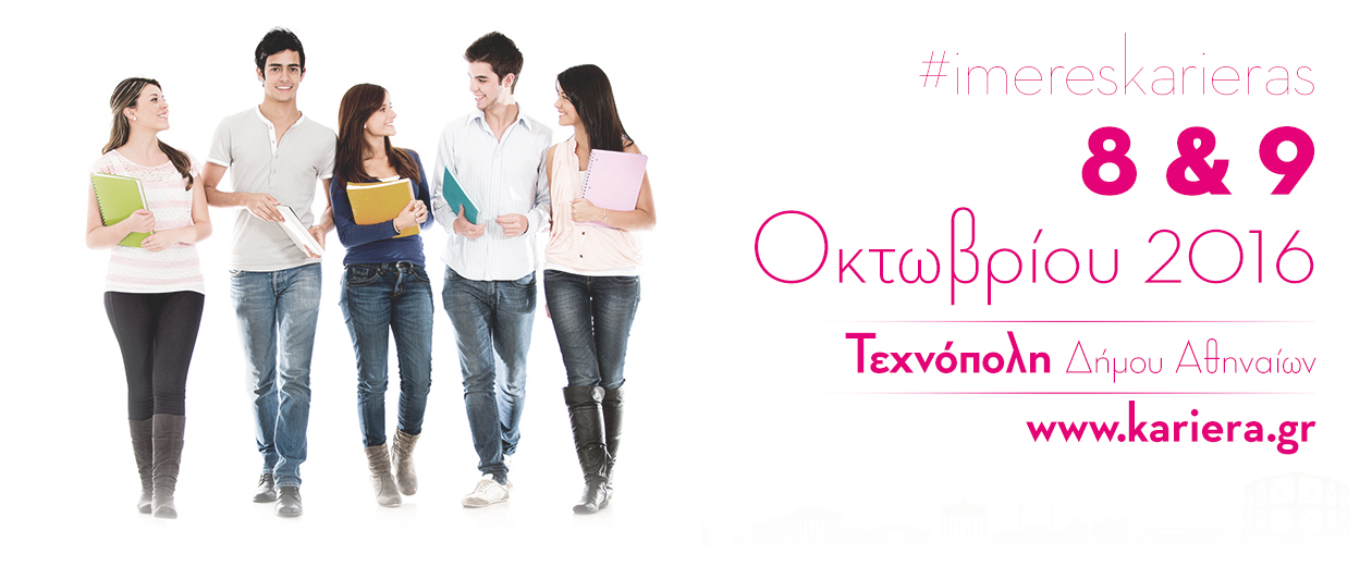 Το kariera.gr, το πρώτο website στην Ελλάδα για την εργασία και μέλος του CareerBuilder, διοργανώνει για 17η χρονιά τις Ημέρες Καριέρας, το μεγαλύτερο event για την εργασία, την επιχειρηματικότητα και την εκπαίδευση.