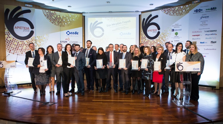 Στην εκδήλωση για την «ΑΡΙΣΤΕΙΑ 2016», που πραγματοποιήθηκε με μεγάλη επιτυχία, τους παριστάμενους χαιρέτισαν οι κ. Κωνσταντίνος Λαμπρινόπουλος, πρόεδρος του ΔΣ της ΕΕΔΕ, Μίλτος Κοζάνης, πρόεδρος της Κριτικής Επιτροπής του Quality Leader of the Year και Γιώργος Γεωργιάδης πρόεδρος του EΟQ.