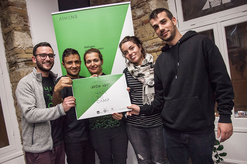 Η ομάδα NativeNet κέρδισε το πρώτο βραβείο των 10.000 $, παρουσιάζοντας μια έξυπνη εφαρμογή για κινητά τηλέφωνα που συγκεντρώνει όλες τις διαθέσιμες υπηρεσίες που αφορούν τους πρόσφυγες σε Αραβικά, Φαρσί και Αγγλικά. Ακόμη περιλαμβάνει μαθήματα βασικών Ελληνικών, ενώ δίνει τη δυνατότητα στους πρόσφυγες να αναδείξουν τις ικανότητές τους και να έρθουν σε επαφή με ΜΚΟ και άλλους δυνητικούς εργοδότες.