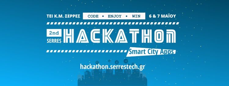 Η τεχνολογική κοινότητα Σερρών SerresTech.gr και το Πρόγραμμα Μεταπτυχιακών Σπουδών στην Εφαρμοσμένη Πληροφορική του Τμήματος Μηχανικών Πληροφορικής, ΤΕΙ Κεντρικής Μακεδονίας (Σερρών) διοργανώνουν το 2ο Hackathon Serres με θέμα “Smart City – Ευφυής Πόλη” το Σάββατο 6 και την Κυριακή 7 Μαΐου 2017.