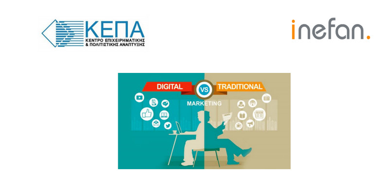 Το Κέντρο Επιχειρηματικής & Πολιτιστικής Ανάπτυξης (ΚΕΠΑ) σε συνεργασία με την οικονομική ιστοσελίδα inefan.gr διοργανώνουν την Πέμπτη 27 Απριλίου 2017 και ώρες 18:00-20:00 στην αίθουσα εκδηλώσεων του Βιοτεχνικού Επιμελητηρίου Θεσσαλονίκης (Αριστοτέλους 27, 4ος όροφος) εκδήλωση με θέμα: «Παραδοσιακό Vs Ψηφιακό (digital) Marketing».