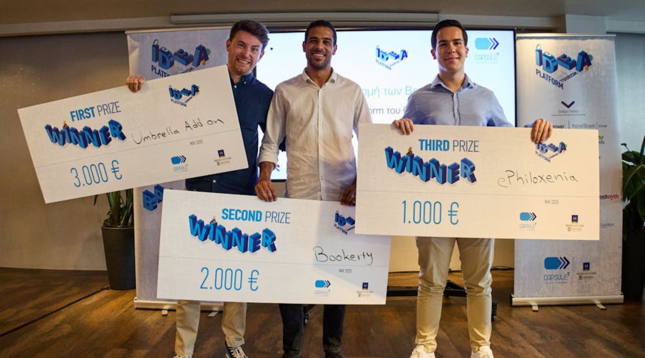 Οι 3 καινοτόμες ομάδες που διακρίθηκαν — Umbrella Add on, Bookerty και ePhiloxenia — εξασφάλισαν έπαθλα και θέσεις στον επόμενο κύκλο επιτάχυνσης!