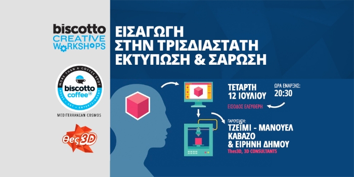 Ένα ακόμη biscotto workshop με θέμα την τρισδιάστατη εκτύπωση & σάρωση θα πραγματοποιηθεί την Τετάρτη 12 Ιουλίου στο biscotto coffee+ στο εμπορικό κέντρο Mediterranean Cosmos.