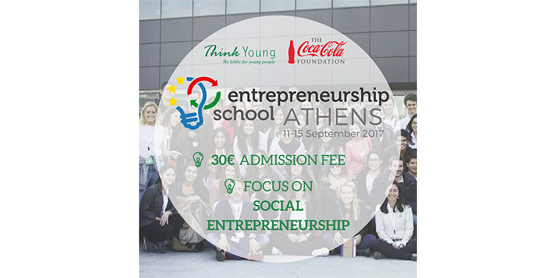 Ο Σύλλογος Νεανικής Επιχειρηματικότητας σε προσκαλεί να δηλώσεις συμμετοχή στη Σχολή Επιχειρηματικότητας (Entrepreneurship School), την πρώτη σχολή χωρίς καθηγητές, που επιστρέφει στην Ελλάδα, σε συνεργασία με το The Coca-Cola Foundation και το διεθνές think tank, Think Young.