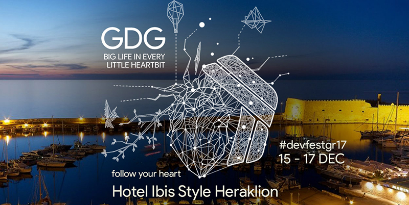 Νιώστε τον παλμό ενός διαφορετικού φεστιβάλ, μιας γιορτής αφιερωμένης στον μέλλον, την καινοτομία και τη δημιουργικότητα. Ελάτε να παρακολουθήσετε και να συμμετάσχετε στην 5η διοργάνωση του DevFest που θα πραγματοποιηθεί στο Ηράκλειο, εκεί που χτυπά για άλλη μια χρονιά η “καρδιά της τεχνολογίας”, στις 16 και 17 Δεκεμβρίου στο νέο ξενοδοχείο “Hotel ibis Styles Heraklion Central”.