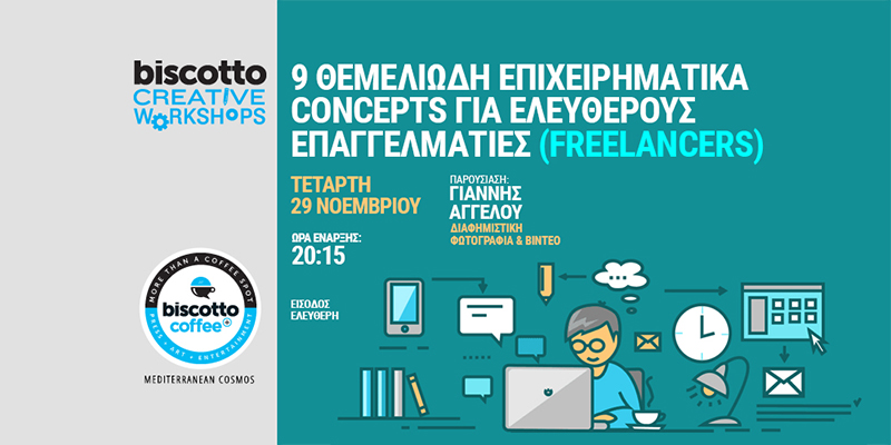Ένα ακόμη biscotto workshop με ένα θέμα που αφορά ελεύθερους επαγγελματίες θα πραγματοποιηθεί την Τετάρτη 29 Νοεμβρίου στο biscotto coffee+ στο εμπορικό κέντρο Mediterranenan Cosmos.