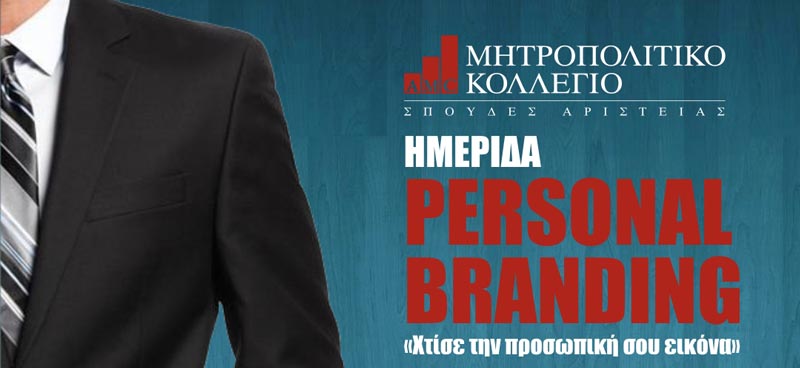 Η Σχολή Διοίκησης Επιχειρήσεων & Οικονομικών του Μητροπολιτικού Κολλεγίου Θεσσαλονίκης διοργανώνει για πρώτη φορά στη Θεσσαλονίκη ημερίδα με ελεύθερη είσοδο και θέμα «Personal Branding: Χτίσε την προσωπική σου εικόνα» την Τετάρτη 28 Φεβρουαρίου 2018, στις 17.00.