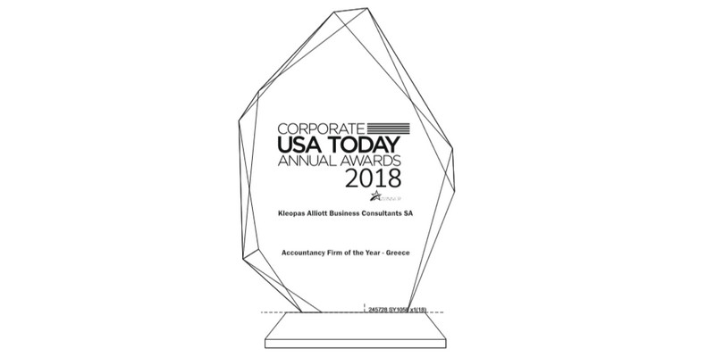 Η Kleopas Alliott Business Consultants αναδείχθηκε η Λογιστική Εταιρεία στην Ελλάδα για το 2018 στα βραβεία Corporate USA Today Annual Awards, επιβεβαιώνοντας για ακόμα μία φορά τη θέση της, ως μία από τις κορυφαίες εταιρίες στην Ελληνική αγορά. Η Kleopas Alliott Business Consultants αποτελεί ένα διεθνούς εμβέλειας πάροχο λογιστικών και φοροτεχνικών υπηρεσιών, που απέσπασε το σημαντικό αυτό τίτλο λόγω τον υψηλών και αποτελεσματικών υπηρεσιών που παρέχει στους πελάτες της στην Ελλάδα και το εξωτερικό.