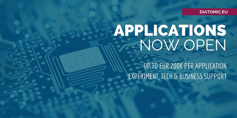 Στη δεύτερη και τελευταία ανοιχτή πρόσκληση για πειράματα εφαρμογών, το DIATOMIC προσφέρει συνολικά €1.610.000 δωρεάν χρηματοδότηση συν υπηρεσίες επιτάχυνσης, σε κορυφαίες νεοσύστατες και μικρομεσαίες επιχειρήσεις και Κέντρα Ικανοτήτων της Ευρωπαϊκής βιομηχανίας μικροηλεκτρονικής.