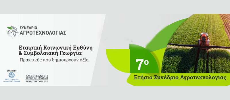 Με μεγάλη επιτυχία πραγματοποιήθηκε από το Ελληνο-Αμερικανικό Εμπορικό Επιμελητήριο σε συνεργασία με την Επιτροπή Αγροτεχνολογίας του το 7ο Συνέδριο Αγροτεχνολογίας με τίτλο: “Εταιρική Κοινωνική Ευθύνη & Συμβολαιακή Γεωργία: Πρακτικές που δημιουργούν αξία”, το οποίο έλαβε χώρα τη Δευτέρα 10 Δεκεμβρίου στις εγκαταστάσεις του Perrotis College της Αμερικανικής Γεωργικής Σχολής.