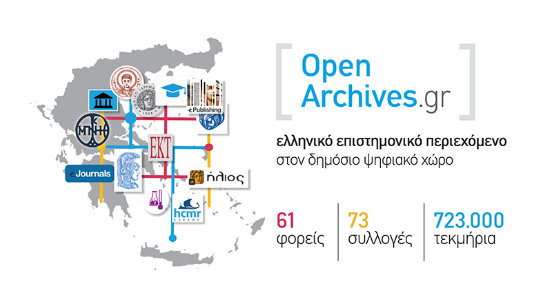 Ο επισκέπτης της ανανεωμένης πύλης OpenArchives.gr (www.openarchives.gr) μπορεί να περιηγηθεί από ένα κοινό σημείο σε περισσότερα από 723.000 ψηφιακά τεκμήρια και να αναζητήσει συλλογές γκρίζας βιβλιογραφίας ακαδημαϊκών ιδρυμάτων και επιστημονικό περιεχόμενο που παράγεται από φορείς έρευνας, επιστήμης και εκπαίδευσης. Διδακτορικές Διατριβές, μεταπτυχιακές εργασίες, βιβλία, δημοσιευμένα άρθρα σε επιστημονικά περιοδικά, τεκμήρια συνεδρίων, βιβλιοκρισίες, συνεντεύξεις και ηχογραφήσεις είναι ορισμένοι μόνο τύποι περιεχομένου που συγκεντρώνονται στο αναβαθμισμένο διαδικτυακό περιβάλλον του OpenArchives.gr.