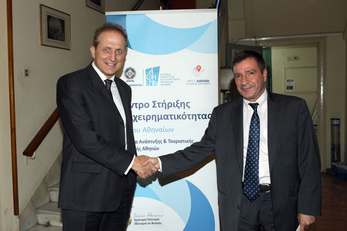 Την προτεραιότητα του δήμου Αθηναίων στη δημιουργία προϋποθέσεων για οικονομική ανάκαμψη και δημιουργία θέσεων εργασίας στην πόλη της Αθήνας, τόνισε ο δήμαρχος Αθηναίων, κ. Γιώργος Καμίνης, στην ημερίδα του Κέντρου Στήριξης Επιχειρηματικότητας του δήμου Αθηναίων, κατά την οποία παρουσιάστηκε μελέτη της εταιρίας ICAP που αποτυπώνει την κατάσταση και τις προσδοκίες των αθηναϊκών επιχειρήσεων.