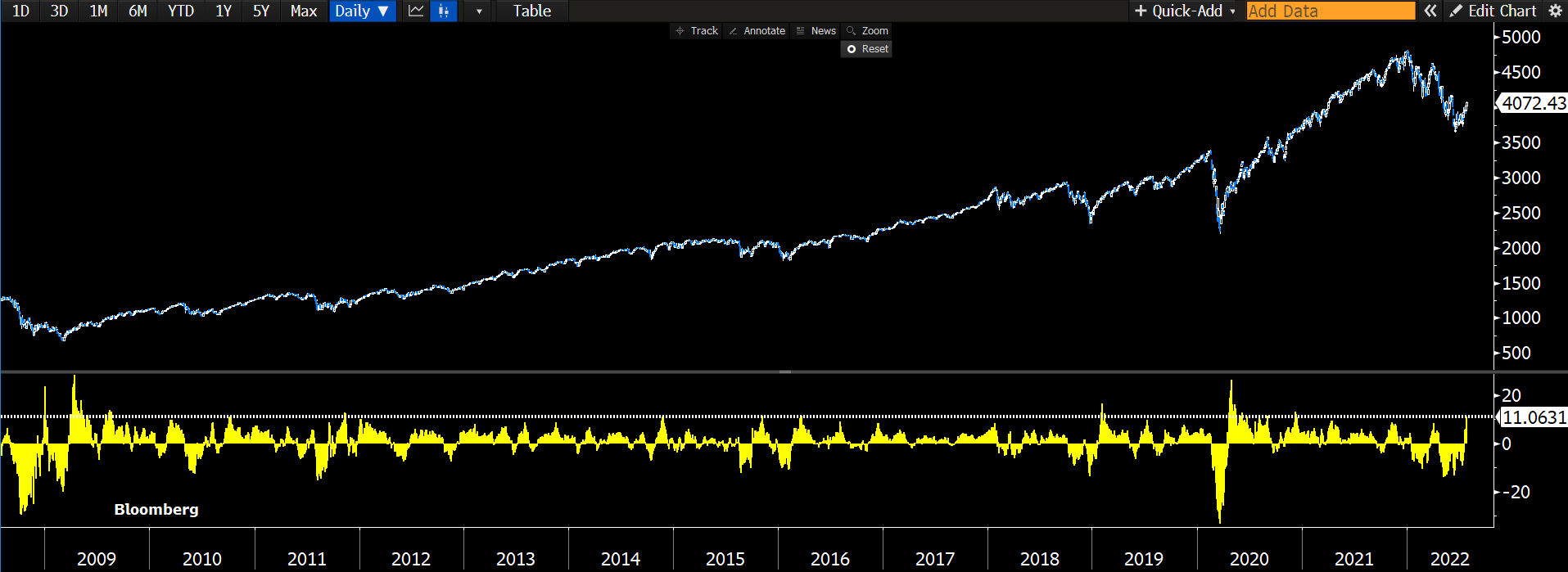 Το τρέχον ράλι, συμπλήρωσε 28 ημέρες και η απόδοσή του είναι 11,06%. Πηγαίνοντας πίσω, ακόμα και στο 2008, κάθε ράλι της ίδιας χρονικής περιόδου με κέρδη πάνω από 11% οδήγησε σε πυθμένα και σε νέο μακροπρόθεσμο ανοδικό trend.