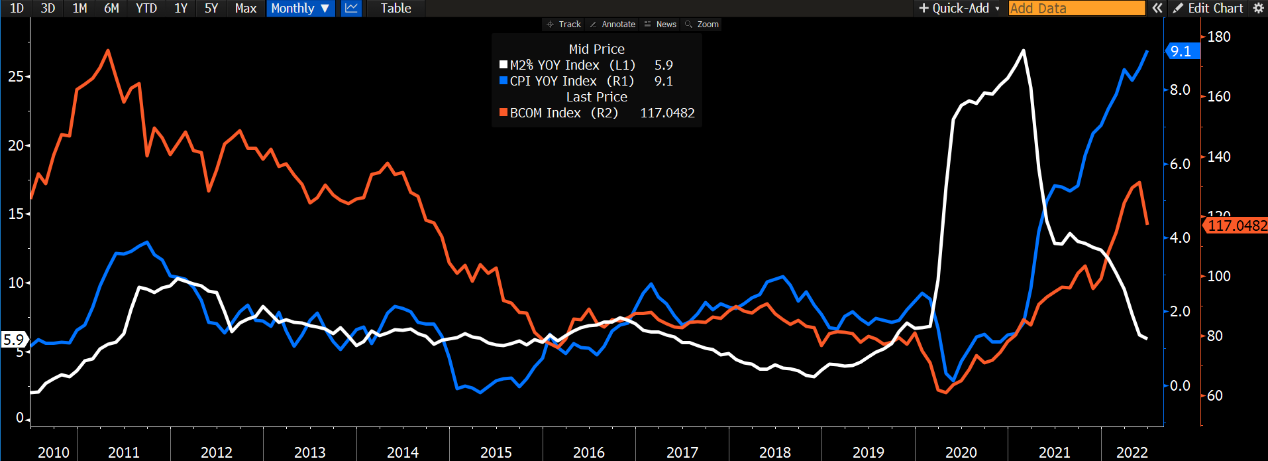 Η ρευστότητα η οποία διοχετεύεται στην οικονομία από τη Fed, έχει επιστρέψει στα φυσιολογικά επίπεδα. Η απόσυρση της ρευστότητας οδήγησε και σε απώλειες μετοχικών αξιών άνω των $10 τρισ. και οι τιμές των εμπορευμάτων έχουν καταγράψει απώλειες. Αυτό μοιάζει περισσότερο με bullish ένδειξη.