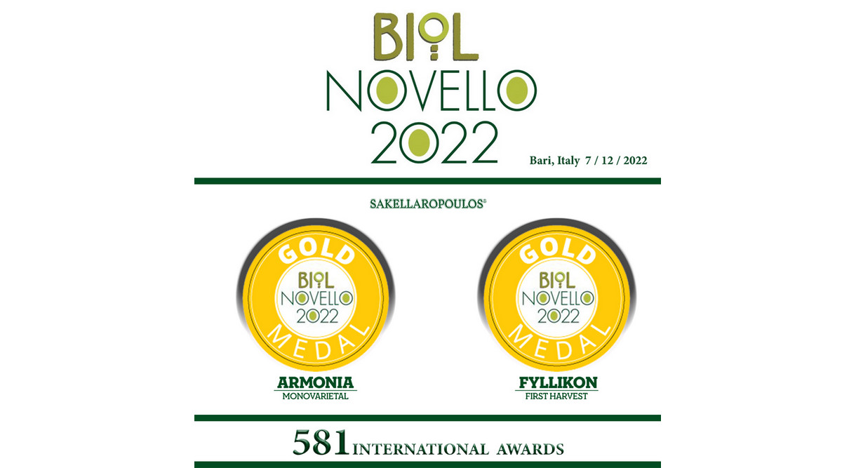 Μια μεγάλη και διπλή χρυσή επιτυχία σε διεθνές επίπεδο πέτυχαν οι βιολογικοί ελαιώνες Σακελλαρόπουλου, στην Ιταλία, και στον παγκόσμιο διαγωνισμό πιστοποιημένων βιολογικών αγουρελαίων, BIOLNOVELLO International Olive Oil Competition 2022 – 2023.