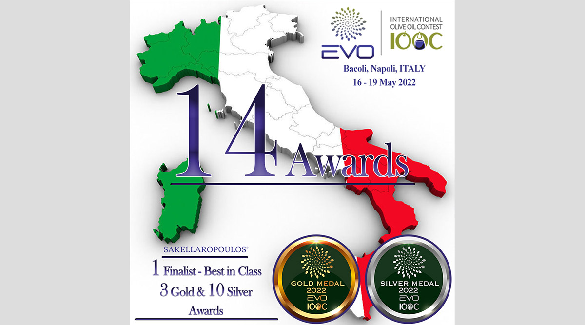 Μια πρωτοφανής διάκριση για Έλληνα ελαιοπαραγωγό Single Estate πολύ υψηλού κύρους, με 14 βραβεύσεις, σημειώθηκε στην Ιταλία, για τους βιολογικούς ελαιώνες Σακελλαρόπουλου, στον έγκριτο διεθνή διαγωνισμό ελαιολάδων EVO International Olive Oil Competition 2022.