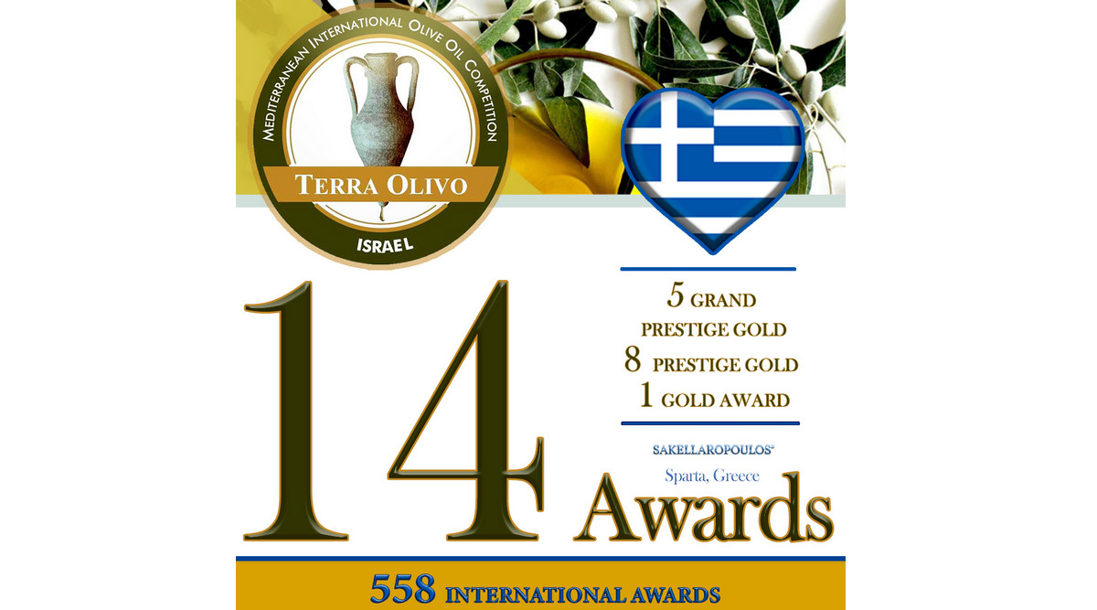 Μεγάλη επιτυχία σε διεθνές επίπεδο για την Ελλάδα, με 14 βραβεία σε 14 συμμετοχές των βιολογικών ελαιώνων Σακελλαρόπουλου, σημειώθηκε στον διεθνή διαγωνισμό ελαιολάδου TERRAOLIVO International Olive Oil Competition 2022.
