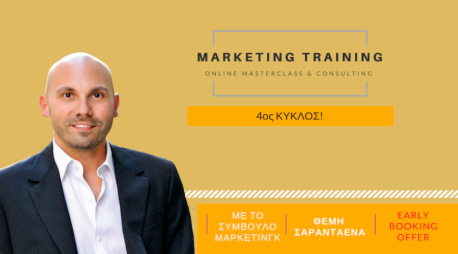 Το Νέο Εκπαιδευτικό πρόγραμμα 4 εβδομάδων, Online Marketing Masterclass & Consulting, με εισηγητή τον πιστοποιημένο σύμβουλο μάρκετινγκ Θέμη Σαρανταένα είναι πλέον διαθέσιμο για 4η φορά!