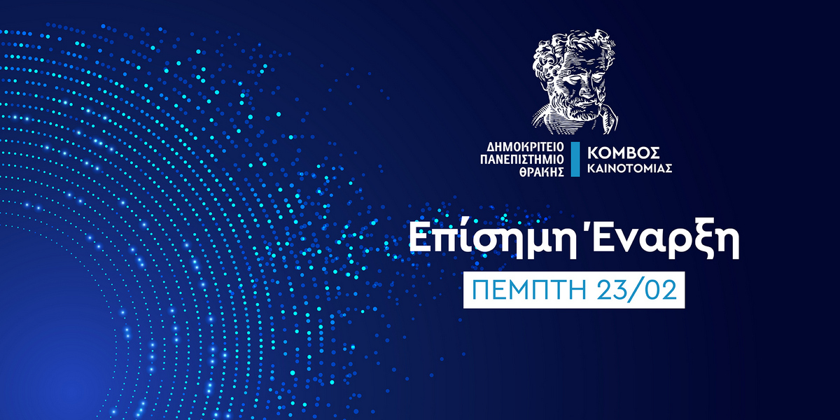 Με μεγάλη επιτυχία ολοκληρώθηκε την Πέμπτη 23 Φεβρουαρίου η διαδικτυακή εκδήλωση για την Επίσημη Έναρξη του Κόμβου Καινοτομίας του Δημοκριτείου Πανεπιστημίου Θράκης. Στην εκδήλωση παρευρέθηκαν πάνω από 100 συμμετέχοντες, εκπροσωπώντας την ακαδημαϊκή, ερευνητική και φοιτητική κοινότητα του πανεπιστημίου, αλλά και εκπρόσωποι της αγοράς, οι οποίοι είχαν την ευκαιρία να μάθουν περισσότερα για το σκοπό και τις δράσεις του Κόμβου Καινοτομίας.