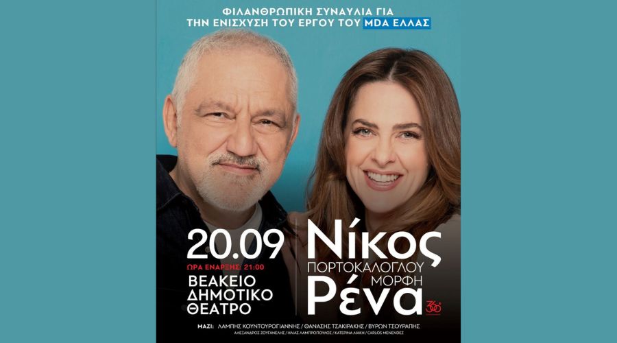 Η Lavipharm ενώνει τη φωνή της με το Σωματείο MDA Ελλάς, που διοργανώνει μια μοναδική συναυλία με τον κορυφαίο τραγουδοποιό Νίκο Πορτοκάλογλου και την εξαιρετική ερμηνεύτρια Ρένα Μόρφη. Η συναυλία θα πραγματοποιηθεί αύριο, 20 Σεπτεμβρίου (ώρα 21.00) στο Βεάκειο Δημοτικό Θέατρο Πειραιά.