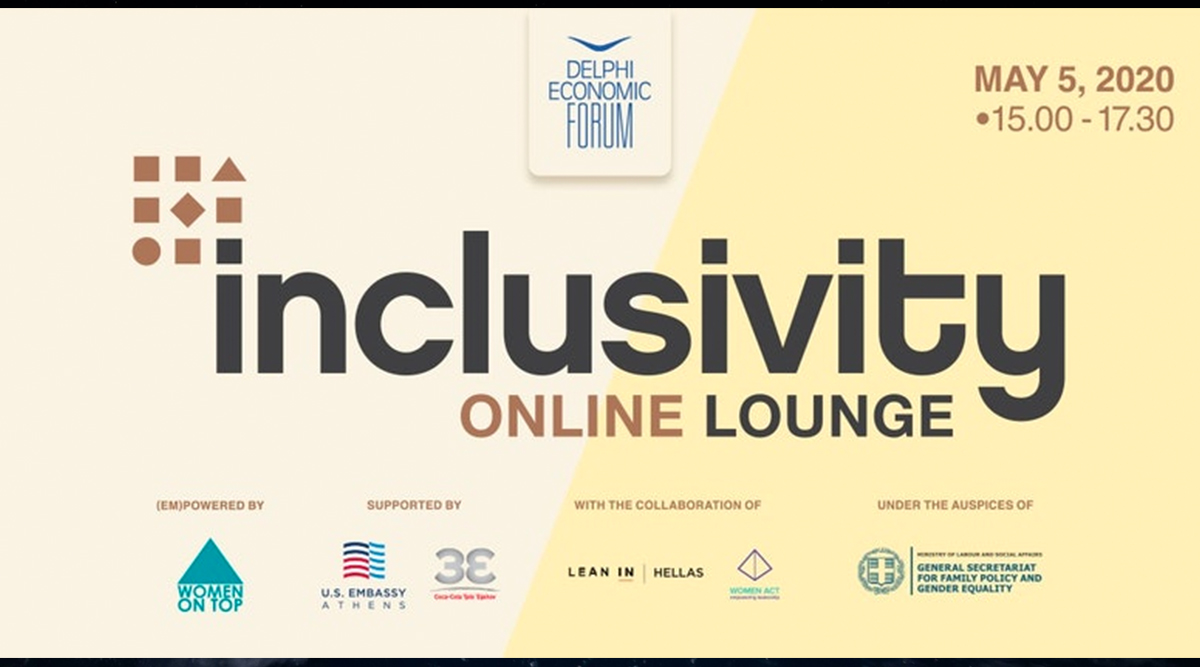 Την Τρίτη 5 Μαΐου, η διαδικτυακή πλατφόρμα του Delphi Economic Forum θα φιλοξενήσει το Inclusivity Lounge online που διοργανώνει το Women On Top, με την υποστήριξη της Πρεσβείας των Η.Π.Α. και της Coca Cola Tria Epsilon, και με τη συνεργασία των Women Act και Lean In Hellas. Το Inclusivity Lounge online διοργανώνεται υπό την αιγίδα της Γενικής Γραμματείας Οικογενειακής Πολιτικής και Ισότητας των Φύλων.
