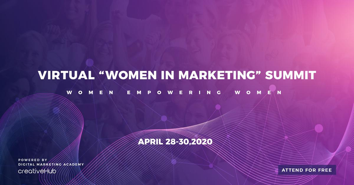 Γυναίκες από όλο τον κόσμο συμμετέχουν στο 1ο ψηφιακό συνέδριο “Women in Marketing“ που διοργανώνεται από το digital marketing academy, CreativeHub και θα λάβει χώρα online 28-30 Απριλίου 2020, ως μια παγκόσμια πρωτοβουλία για τον εμπλουτισμό γνώσεων και ενδυνάμωση ικανοτήτων των γυναικών στην αγορά εργασίας.