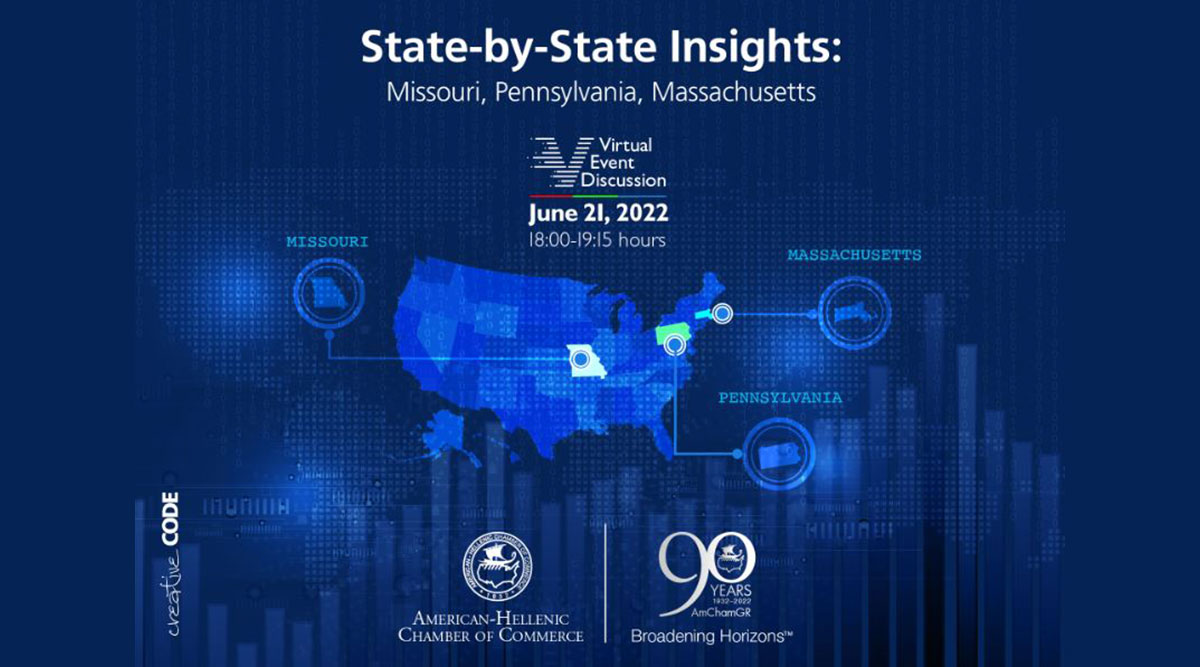 Την Τρίτη 21 Ιουνίου πραγματοποιείται από το Ελληνο-Αμερικανικό Εμπορικό Επιμελητήριο και το Τμήμα Διεθνούς Εμπορίου “TradeUSA”, διαδικτυακό σεμινάριο (webinar) στο οποίο αναλύονται τα χαρακτηριστικά των Πολιτείων της Πενσυλβάνια, του Μιζούρι και της Μασαχουσέτης, παρέχοντας σημαντική τεχνογνωσία που μπορεί να αξιοποιηθεί από τις επιχειρήσεις στην εξαγωγική τους στρατηγική, για την καλύτερη δυνατή στόχευση στην αμερικανική αγορά.