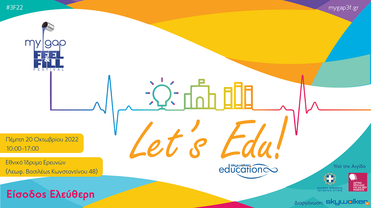 Νέα σχολική χρονιά, νέες προοπτικές, νέες εκπαιδευτικές προτάσεις και δράσεις! Let’s Edu! Το skywalker.gr διοργανώνει το φεστιβάλ εκπαίδευσης My Gap Feel & Fill Festival, μια καινοτόμο εκπαιδευτική δράση και μοναδική εμπειρία που αφιερώνεται στην προσωπική ανάπτυξη και στη μάθηση την Πέμπτη 20 Οκτωβρίου 2022 και ώρα 10:00-17:00 στο Εθνικό Ίδρυμα Ερευνών, Λεωφ. Βασιλέως Κωνσταντίνου 48.