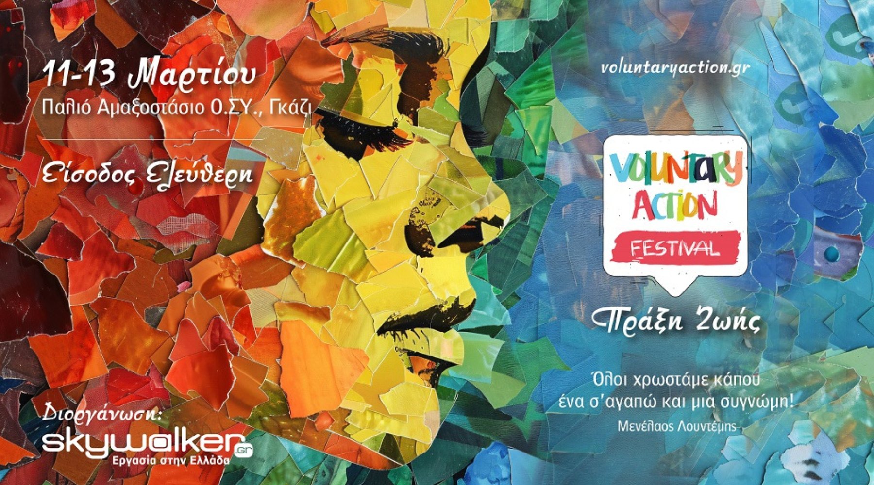 Το κορυφαίο Φεστιβάλ Εθελοντισμού Voluntary Action 2025 επιστρέφει για 8η χρονιά στις 11, 12 και 13 Μαρτίου στο Παλιό Αμαξοστάσιο Ο.ΣΥ. στο Γκάζι, με ελεύθερη είσοδο. Η μεγαλύτερη γιορτή εθελοντισμού, όπου η προσφορά, η συνεργασία και η έκφραση ευγνωμοσύνης συναντιούνται, διοργανώνεται για άλλη μία χρονιά από το skywalker.gr – Εργασία στην Ελλάδα.
