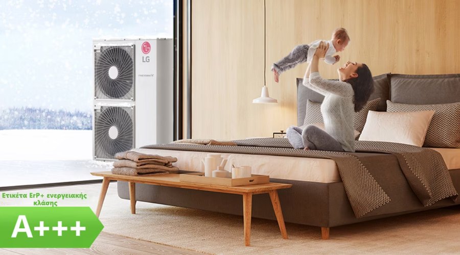 Τέλος, η αντλία θερμότητας LG THERMA V είναι ενεργειακής κλάσης Α+++ και μπορεί να παράγει έως και 4 φορές περισσότερη θερμική ενέργεια από όση χρειάζεται για να λειτουργήσει. Με την αγορά μιας αντλίας θερμότητας από την LG, να είστε σίγουροι πως θα απολαμβάνετε αποτελεσματική θέρμανση στο σπίτι σας, κάνοντας παράλληλα μία επένδυση που αποδίδει και μειώνει σημαντικά τον λογαριασμό του ηλεκτρικού ρεύματος σας.
