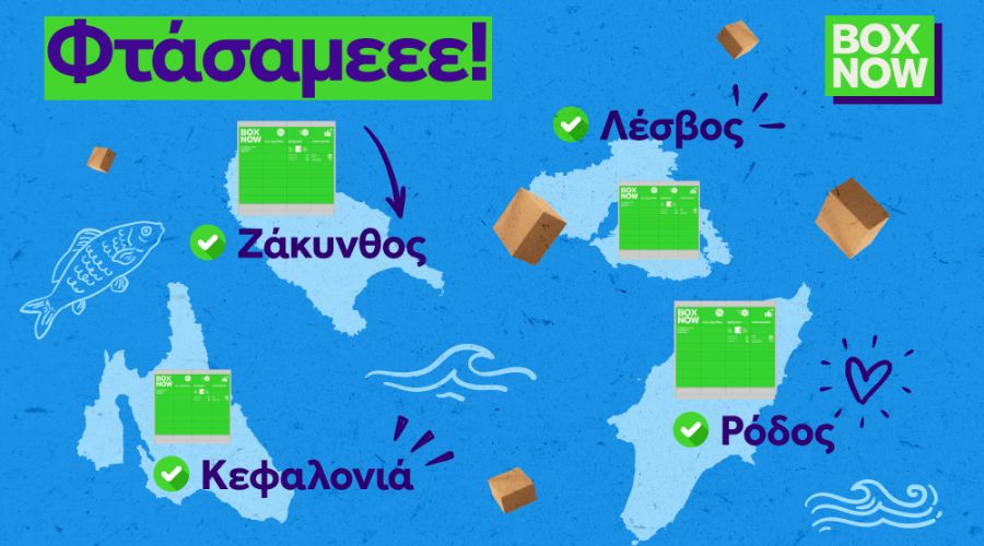 Η BOX NOW, η καινοτόμος πλατφόρμα ταχυμεταφορών, ανακοινώνει την επέκταση του δικτύου της σε τέσσερα ακόμη ελληνικά νησιά: τη Ρόδο, τη Μυτιλήνη, τη Ζάκυνθο και την Κεφαλονιά αγγίζοντας πλέον το 96% της πληθυσμιακής κάλυψης με 130.000 θυρίδες σε όλη την Ελλάδα!