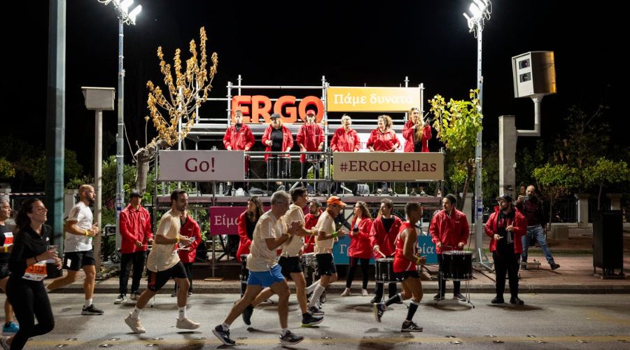 Κατά μήκος της διαδρομής όλων των αγώνων η ERGO υποστήριξε τους δρομείς με τις ομάδες των Επίσημων Εμψυχωτών της. Στην αρχή της διαδρομής επί της οδού Πανεπιστημίου, οι ήχοι από το δυνατό dj set μαζί και με τα εμψυχωτικά μηνύματα της ομάδας έδιναν τον απαραίτητο ρυθμό, ενώ επί της Λ. Βασ. Σοφίας ομάδα τυμπανιστών έδινε στους δρομείς περαιτέρω ώθηση για να ολοκληρώσουν την προσπάθειά τους, μέχρι τον τερματισμό.
