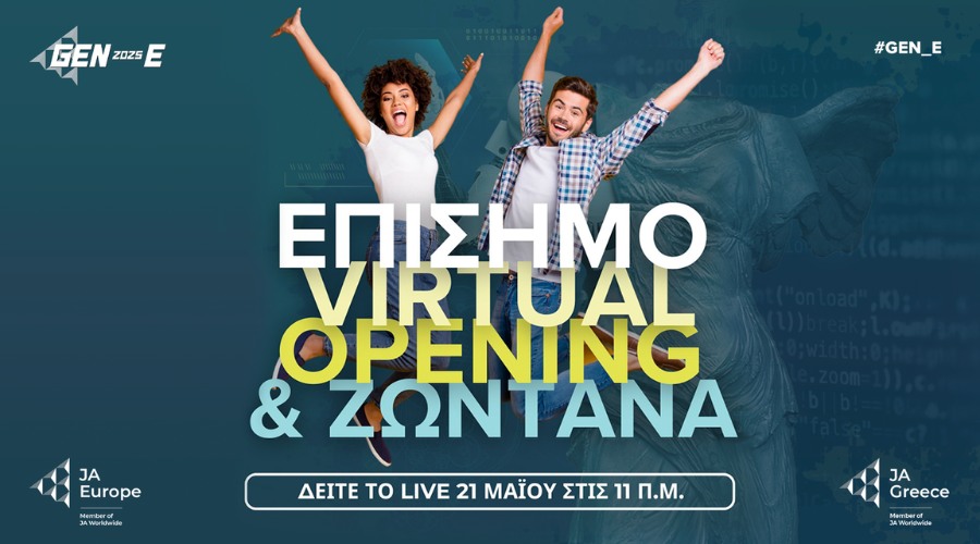 Την Τετάρτη 21 Μαΐου, στις 11:00 ώρα Ελλάδος, θα πραγματοποιηθεί η επίσημη διαδικτυακή τελετή έναρξης (Οfficial Virtual Opening) του Gen-E 2025 με LIVE μετάδοση από την Αθήνα στην επίσημη ιστοσελίδα της διοργάνωσης www.gen-e.eu και στην σελίδα του JA Europe και του JA Greece στο Facebook.