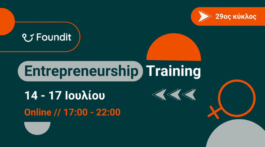Το δωρεάν πρόγραμμα επιχειρηματικότητας Foundit (https:/foundit.bizrupt.gr) έρχεται με νέο κύκλο, εντελώς διαφορετικό από τους προηγούμενους. Ο 29ος κύκλος είναι “Female Edition”, δηλαδή ειδικά σχεδιασμένος για γυναίκες σε επαγγελματική μετάβαση, με κάποια επιχειρηματική ιδέα ή μία νέα επιχείρηση που χρειάζεται υποστήριξη. Το training του 29ου κύκλου θα πραγματοποιηθεί online από τις 14 έως τις 17 Ιουλίου, κάθε απόγευμα από τις 17:00 έως τις 22:00!