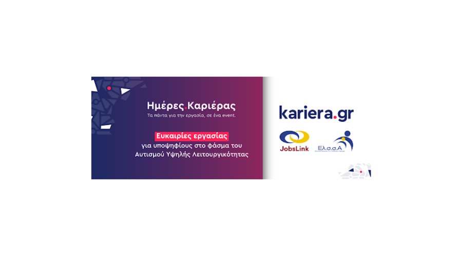 Αυτό φιλοδοξεί να το αλλάξει η νέα συνεργασία του μεγαλύτερου hub για την εργασιακή ζωή στην Ελλάδα, του kariera.gr, με το Jobslink, το ειδικό πρόγραμμα εύρεσης εργασίας που δημιούργησε ο Ελ.σ.σ.Α., ο Ελληνικός Σύλλογος για το Σύνδρομο Asperger, ο οποίος φτιάχτηκε από άτομα που βρίσκονται στο φάσμα του αυτισμού, τις οικογένειές τους και τους φίλους τους.